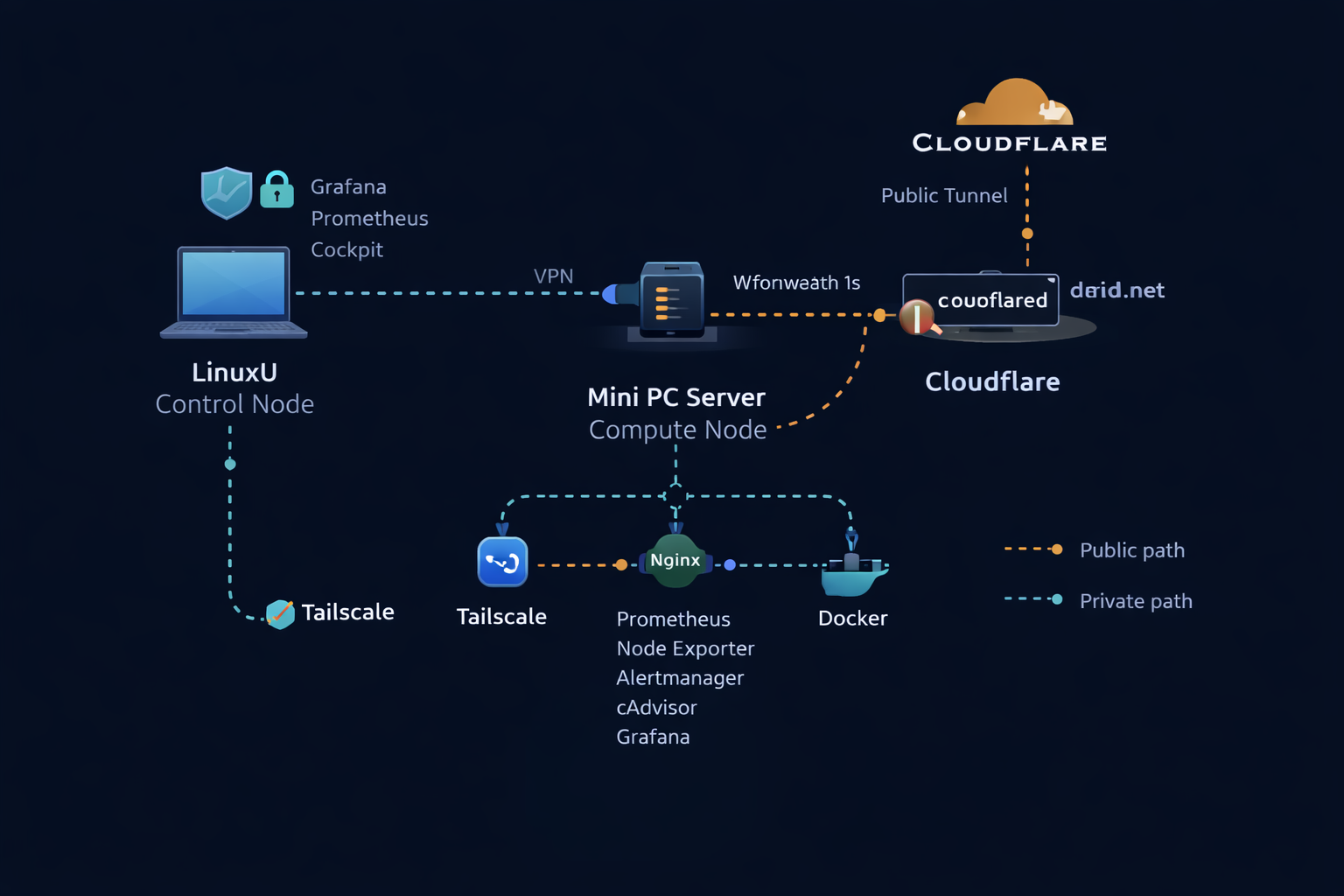 Hardware, services, and monitoring stack for dlbuild.net — designed for safe public publishing (static only) while keeping admin endpoints private.